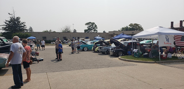 Mary Lou had a big day for sure. We ended up winning three awards at the show! There were 110 vehicles there and cars/trucks we hadn't seen before. We got parked and Cindy wandered over to say hey to Gary and Sandy Pullen. She came back and say we may want to move up front...there were some open spots. We made the move and we got invited under the Pullen canopy so we were saved from the sun.